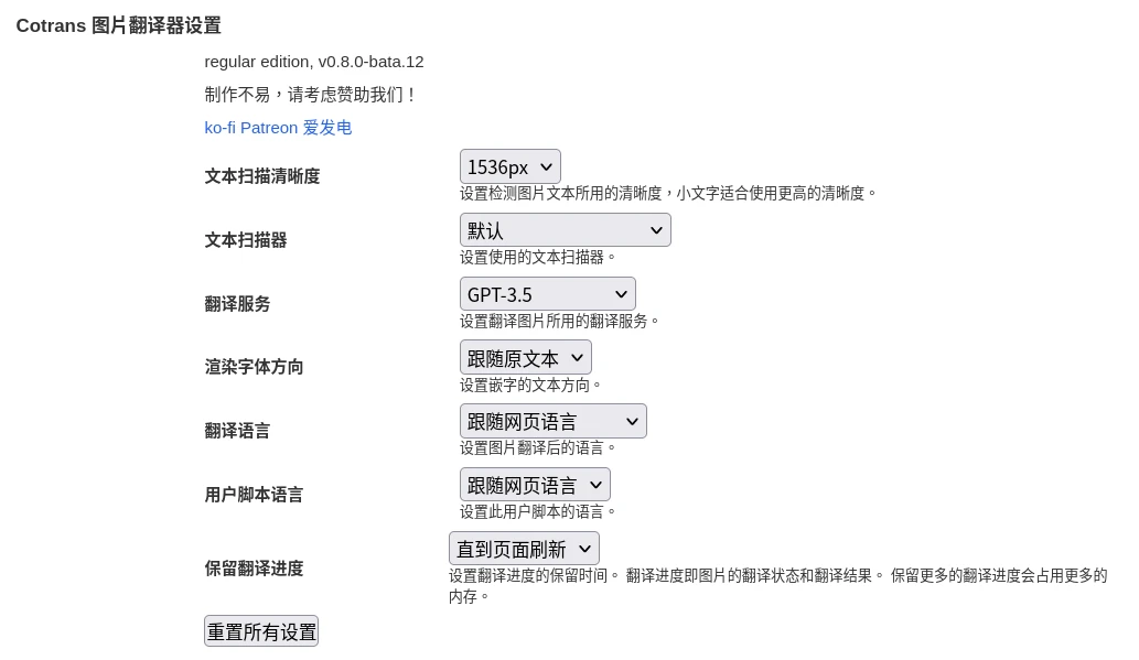 開發者提供Greasyfork指令稿,用於即時翻譯Pixiv與Twitter漫畫圖片。預設是將圖片上傳到Cotrans伺服器處理再覆蓋原本圖片。