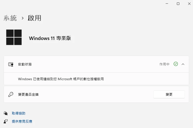 重開機後開啟Windows系統設定 → 關於,查看系統是否已為啟用狀態。