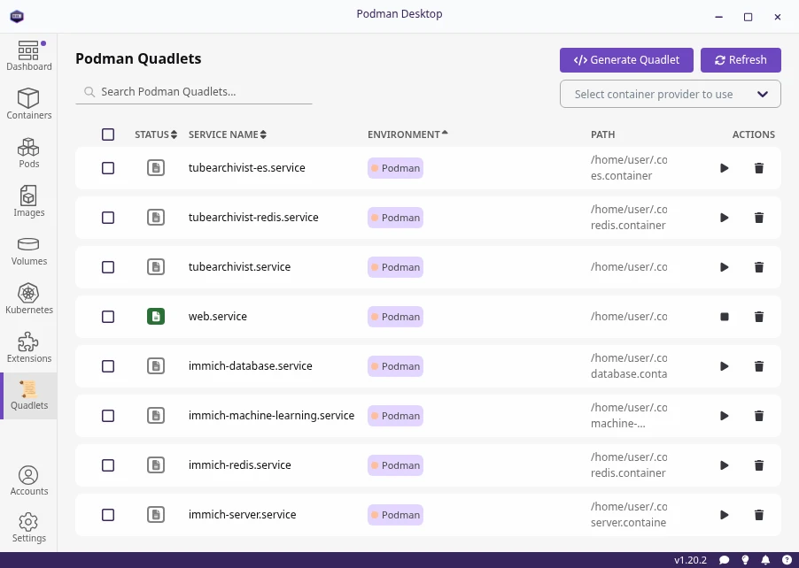 這樣一來,Podman Desktop圖形介面就能協助管理系統上的容器服務。只不過Quadlets的作法就變成更Linux-orientedㄌ,畢竟需要Systemd,對在其他作業系統跑容器服務的用戶來說可能會多一些學習成本。