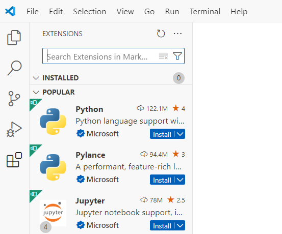 Visual Studio Code開啟後,點選左邊選單,切換到「延伸模組」頁面。