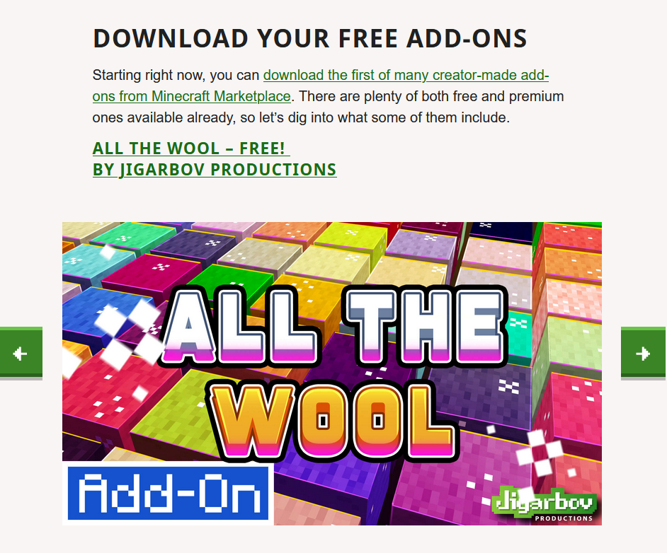 但好處是官方有完整的說明文件,具體Add-On能做到什麼都有百科能查詢。Mojang官方還撰寫了詳細的文件指引玩家製作Add-On。