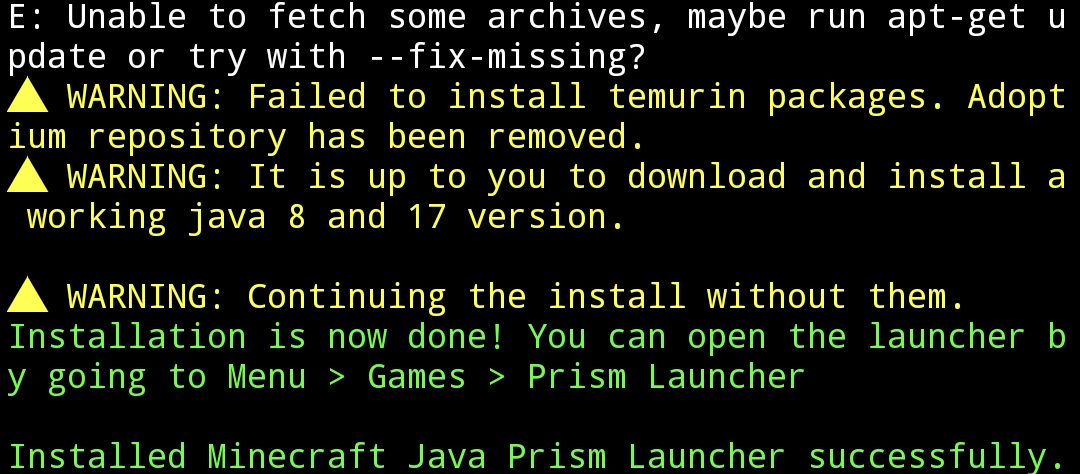 這個指令稿會自動安裝Prism Launcher,但OpenJDK可能會下載失敗: