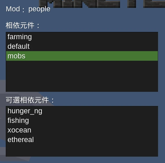 左邊顯示的「相依元件」代表自動啟用的相依模組。「可選相依元件」代表此模組能與更多模組相容,並互相使用物品。