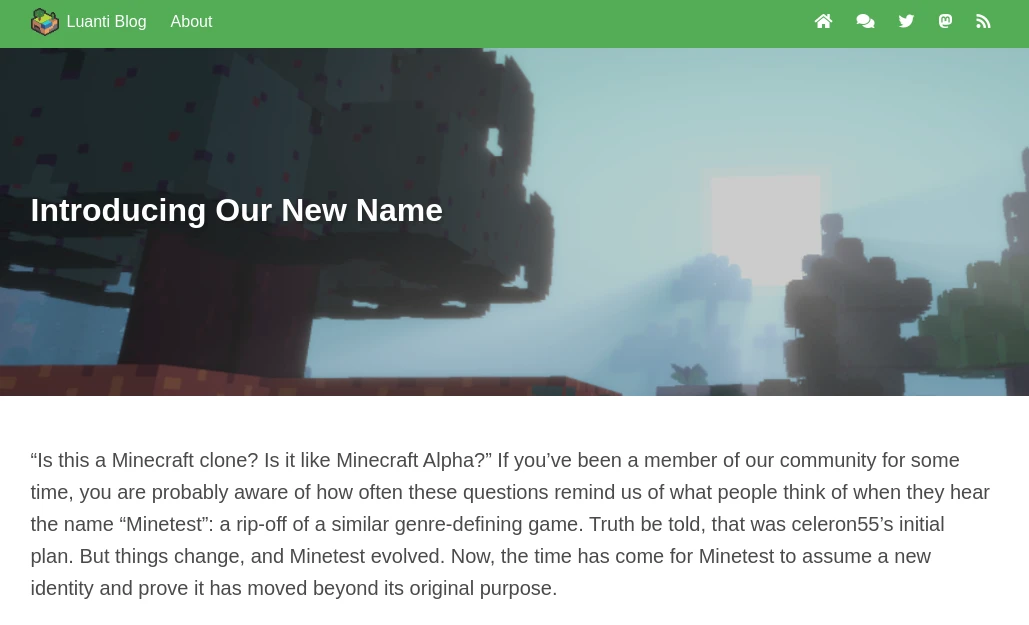 一個開源專案研發十年後才改名!?《Minetest》是在2010年推出的開源方塊遊戲。最近,在經過一年多的社群討論後,於2024年10月13日,遊戲改名為《Luanti》。