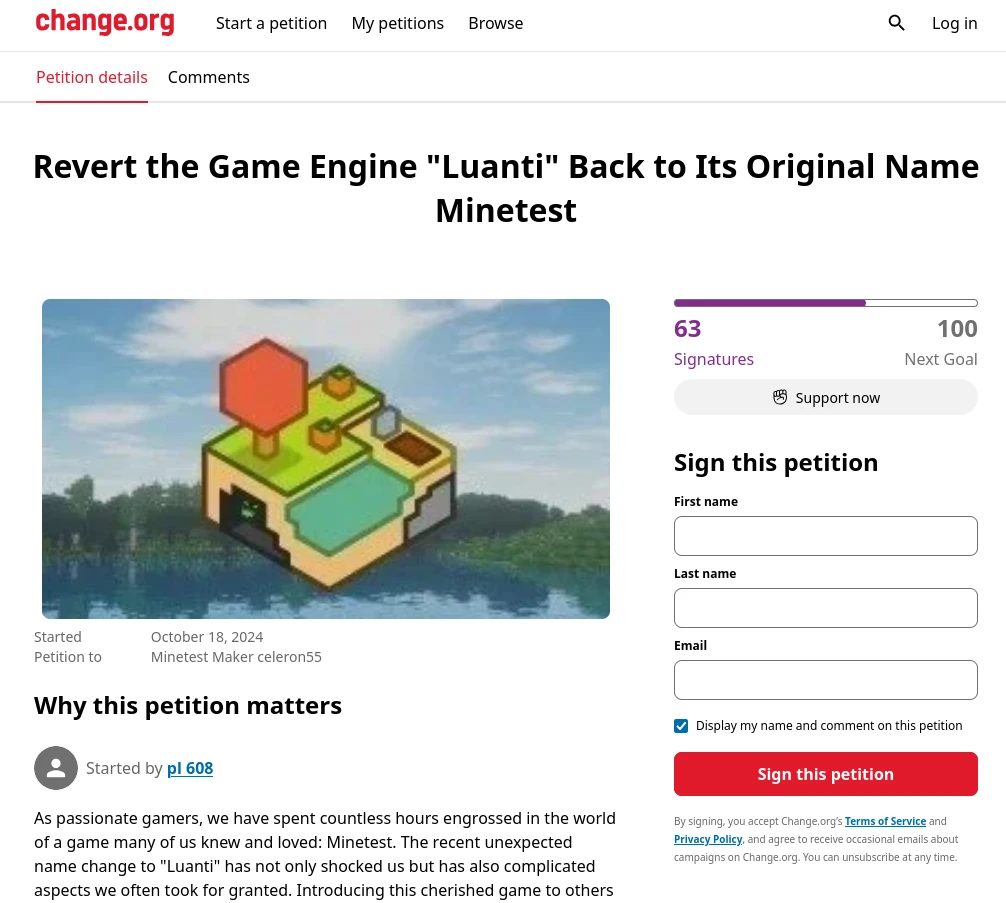 話說竟然有人在Change.org發起請願,要求改回Minetest的舊名XDD 你討厭新名字,自己fork一份不就好了!