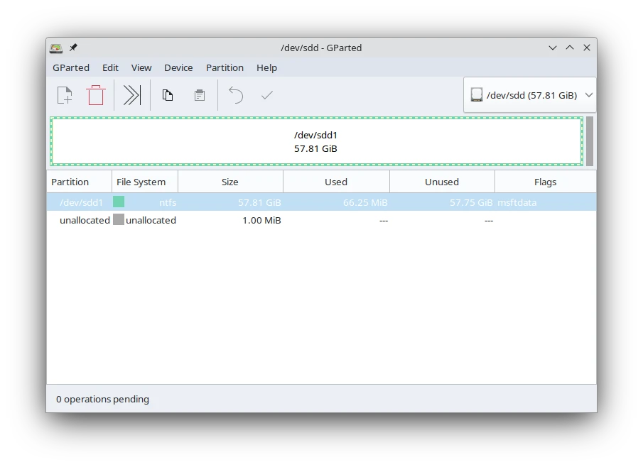 選擇要格式化的硬碟,通常Gparted上面會寫這個硬碟的檔案系統為何,由此可知這就是你要修改的NTFS硬碟。