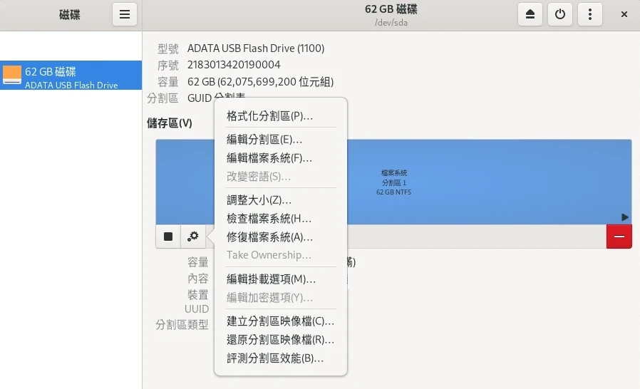 註:雖然NTFS-3G驅動的相容性這幾年來已經改進了許多,但NTFS畢竟是專有格式,開源驅動無法100%相容所有功能,建議別把重要的Linux程式放在NTFS的磁碟跑,NTFS僅用來儲存資料就好。