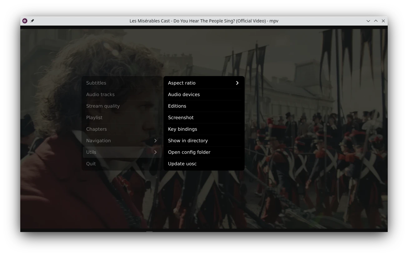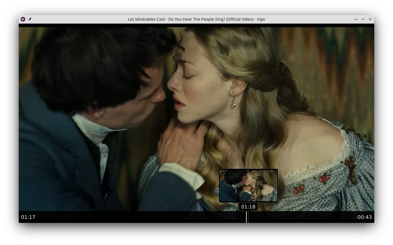 Tomas Klaen開發的uosc指令稿可以讓MPV比較像個正常的播放器。uosc還要搭配po5開發的thumbfast才會有時間軸縮圖預覽(video thumbnail preview on timebar)的功能。