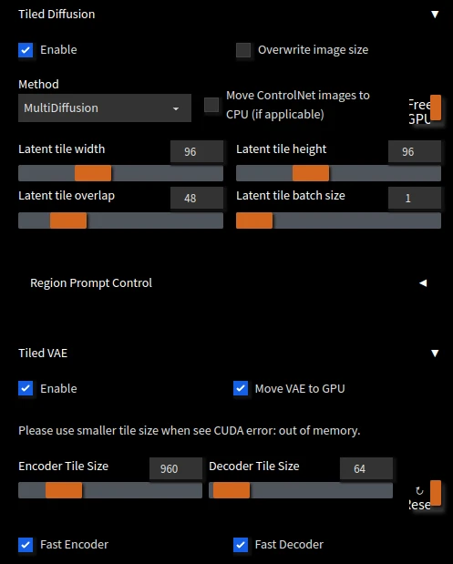 這個擴充功能讓VRAM偏低(< 6GB)的電腦也能生成1080x1080以上解析度的大型圖片,甚至不需要用--lowvram和--medvram引數來啟動Stable Diffusion WebUI了。
