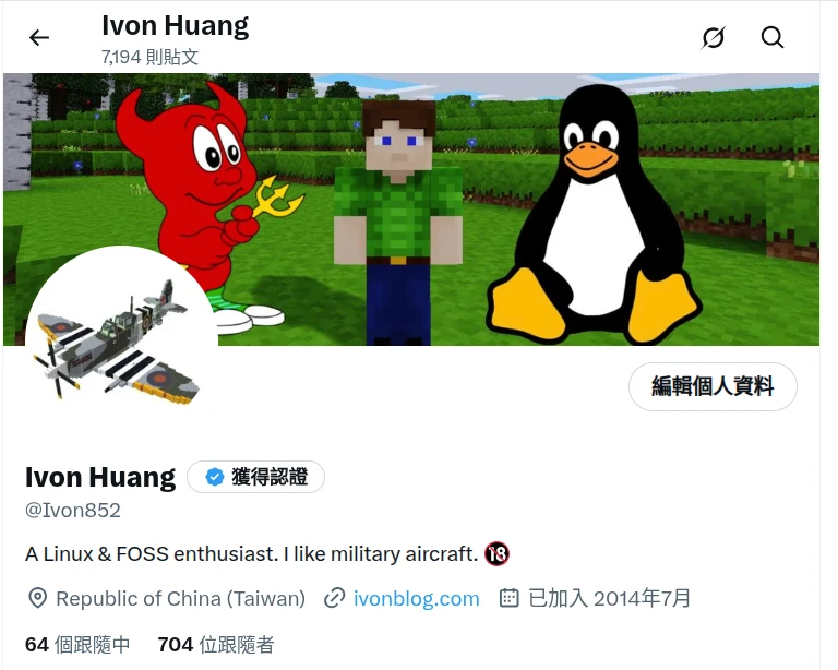 簡述我玩Twitter的歷史:這個帳號@Ivon852早在Twitter改名為X.com之前就已經加入了,這個月是第11週年。初期是用來追蹤一些Twitter的Minecraft PE外國創作者帳號,還有追蹤畫R18同人本的日本繪師消息。2020年我開始製作Minecraft Bedrock模組後才積極更新動態,大部份是用英文報導開發進度,還加了一票Discord好友獲得友善互動。大概2022年之後意志消沈,Twitter便很少使用了,還把過去追蹤的幾百個帳號都退追了,堅壁清野,只有偶爾在上面轉推一些資訊消息。現在慢慢把過去的帳號追蹤回來,主力追蹤的是FOSS開發者以及Linux方面的消息,還有喜歡的日本繪師以及Minecraft資訊。是的,即使開源社群偏好Mastodon,但還是有許多沒那麼純的用戶,會受不了大公司誘惑,繼續待在主流平台。
