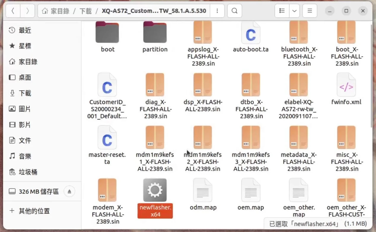 於韌體的目錄開啟終端機,執行NewFlasher: