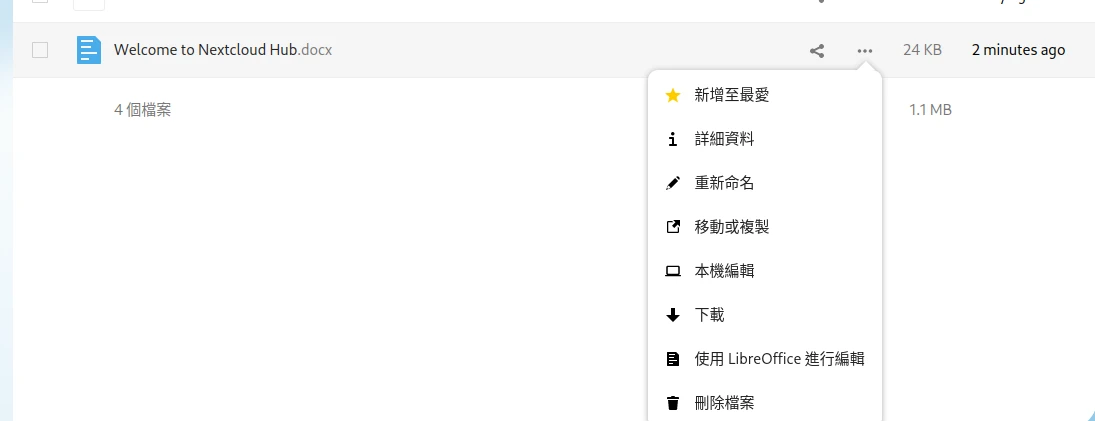 這樣文件的選單即會有用本機LibreOffice編輯的選項。