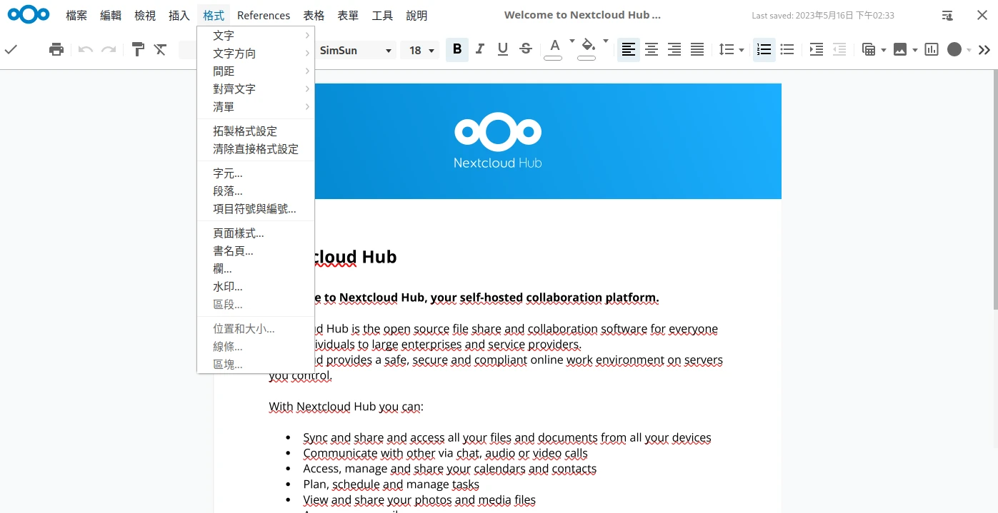 這樣就可以在Nextcloud的網頁界面編輯Office文件了。