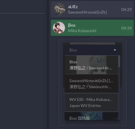 在播放音樂的時候,點選右邊的播放列表歌曲會彈出更多來源讓您切換。由於Nuclear Music Player是從多個音樂來源抓歌,難免會有出錯的時候。如果您發現Nuclear Music Player抓錯歌曲,那麼可以點這裡切換。