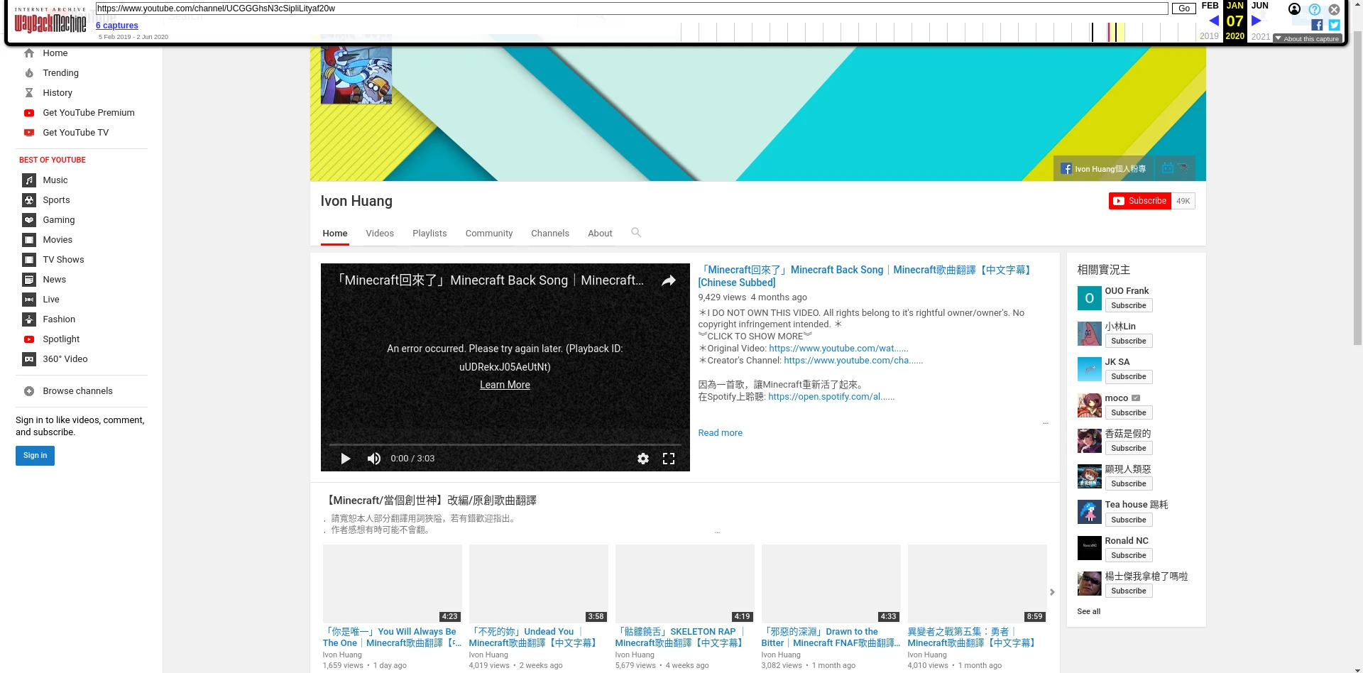 下面是2020年1月7日,由Web Archive快照拍下的頻道遺照。