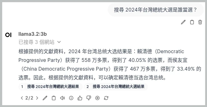 這樣即使語言模型訓練時沒有加入最新資訊,他也能夠透過網路搜尋即時獲取最新資訊。