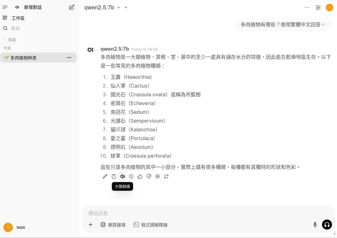 用途為何?或許可以將文字轉語音的技術用於語言學習,與語言模型練習對話。或者讓Open WebUI上網搜尋資訊,並讓它把內容朗讀出來。