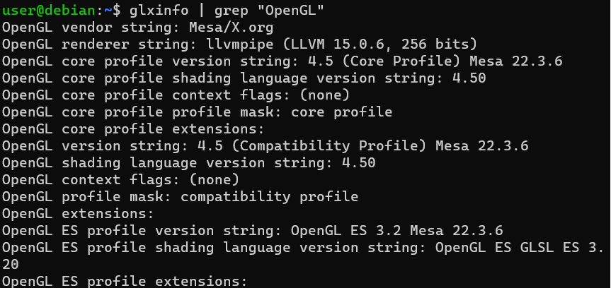 glxinfo | grep "OpenGL",看容器是否成功認到Windows的GPU