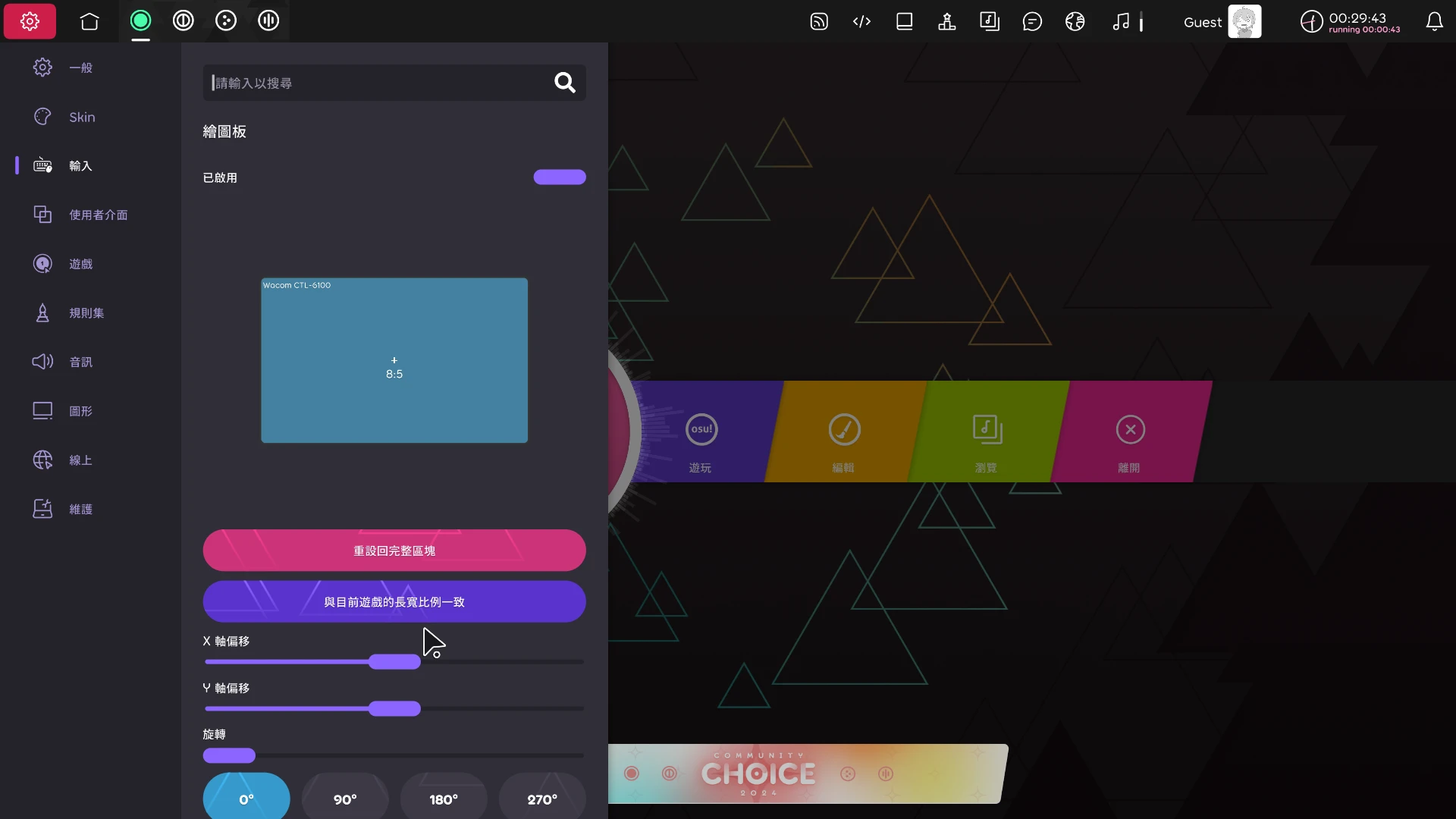 用繪圖板玩也是可以的,Wacom繪圖板在Linux的支援度很不錯。osu!得搭配OpenTabletDriver,才能在遊戲裡面偵測到繪圖板。