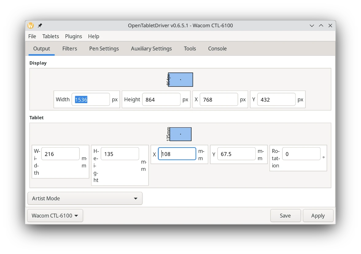 重啟電腦,開啟OpenTabletDriver設定界面,啟用Artist Mode。