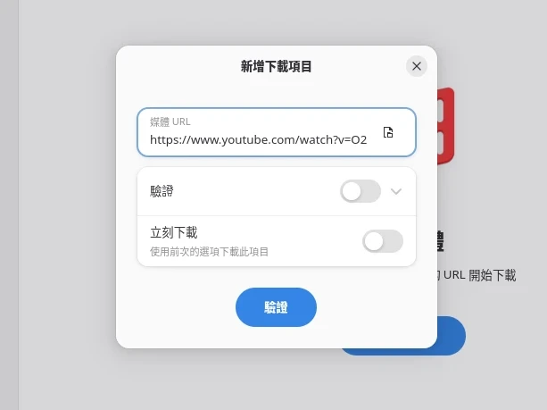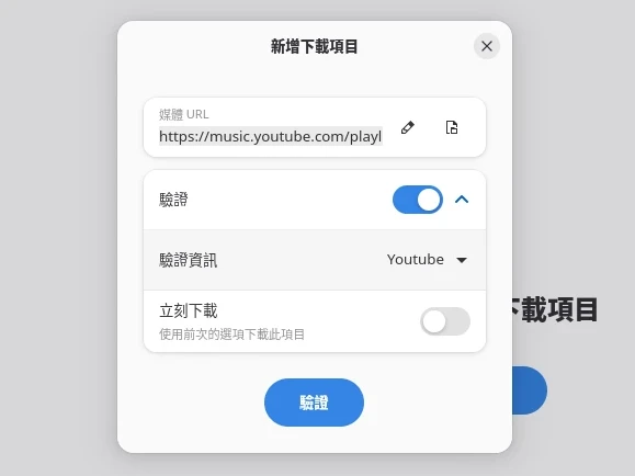 第二種方法:點選左側的金鑰環,新增Youtube帳號,輸入帳號與密碼。再於下載影片的時候選取使用這個驗證方法。不過這個似乎不是用來給Youtube登入用的?