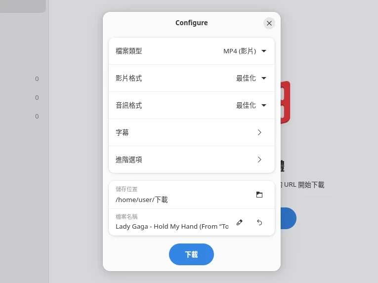 勾選要下載的內容。影片和音訊都選取最高品質,程式就會嘗試自動選取4K畫質。格式選取.mp4(相容性最好)或者.mkv(支援多軌道字幕),如果選.mp3就是下載純音訊。並視需要下載Youtube的CC字幕。