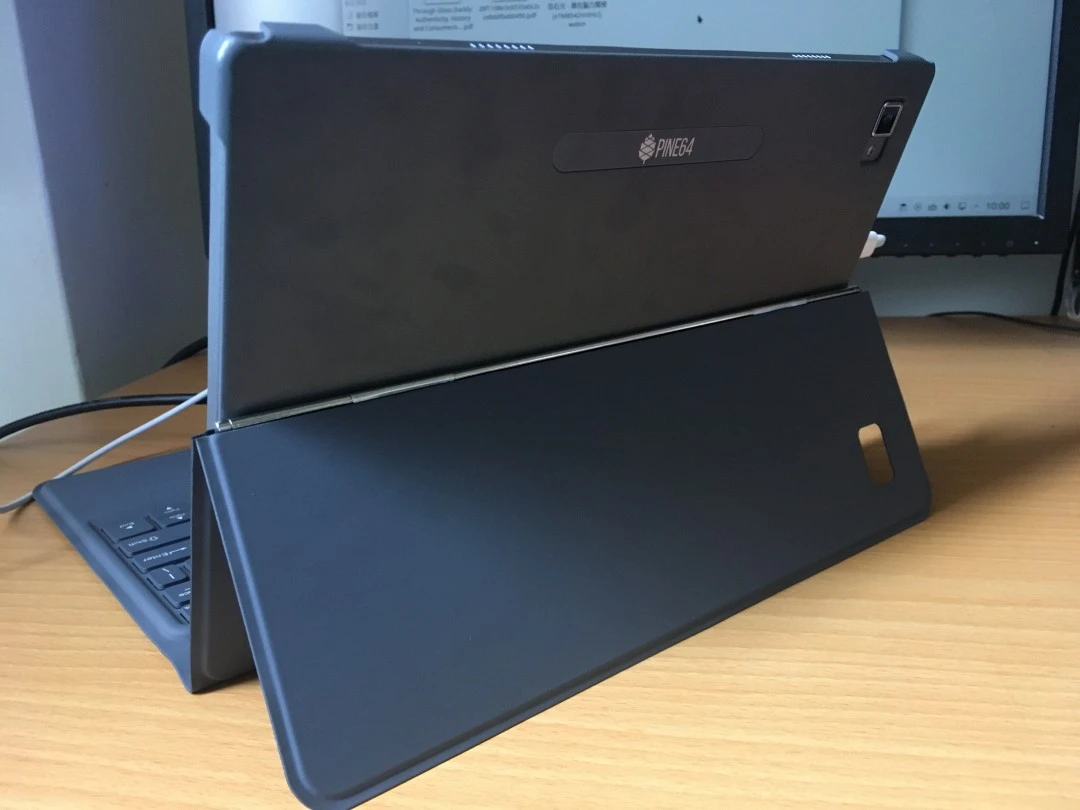 皮套可以立起來,後面有Pine64標誌,注意那個相機!謝謝你的注意,該相機目前是好看用的。