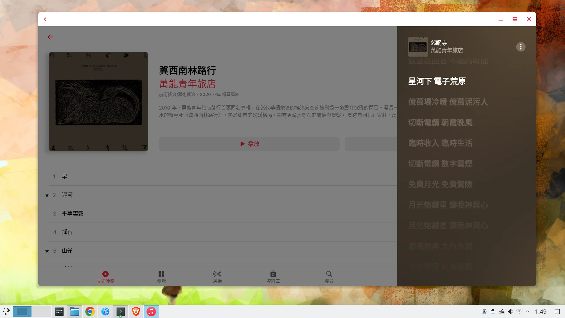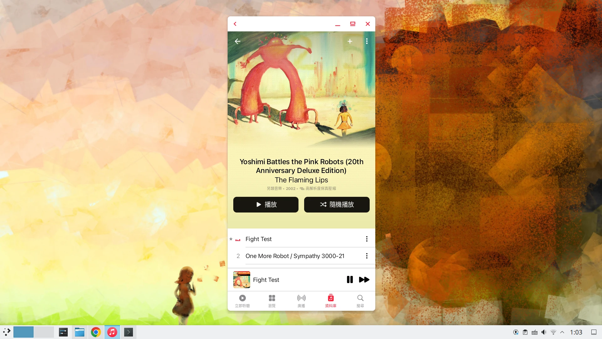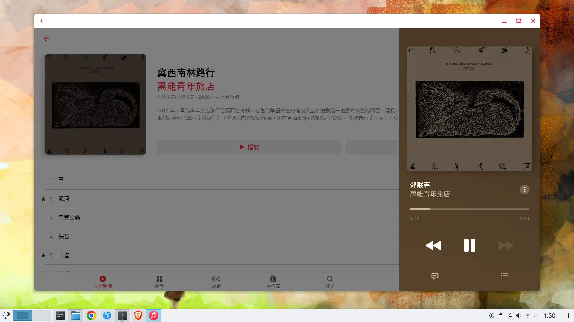 斟酌啟用多視窗模式。在支援好的Wayland環境下,就可以自由調整Apple Music的版面大小。