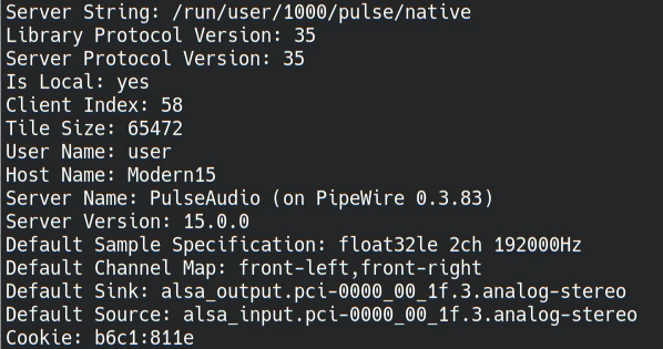 pactl info,確認目前使用的是PipeWire,印出...on PipeWire代表目前是PipeWire。
