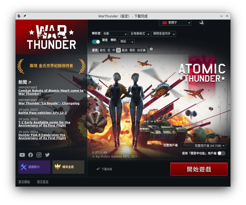 撰文當下,《戰爭雷霆》沒有原生Wayland版本,是透過XWayland跑的。