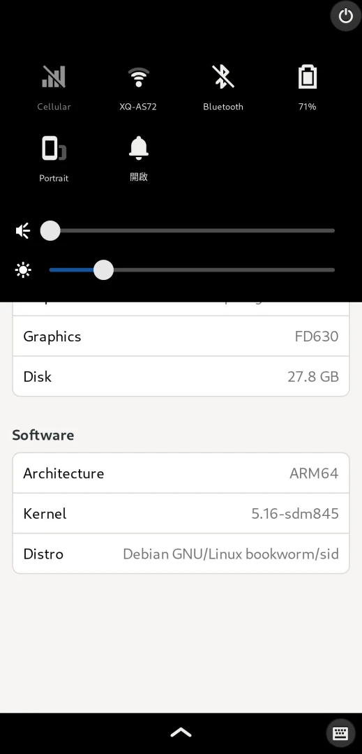 我的手機是小米Poco F1,截至目前2023年4月,Mobian系統下大部分硬體功能正常,但是相機和OTG仍無法使用。