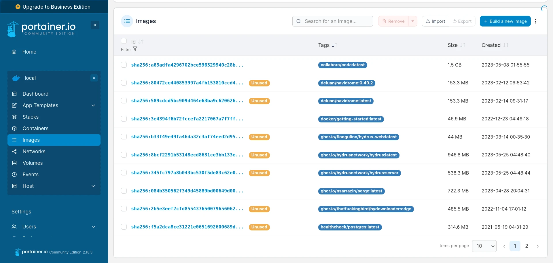 針對需要騰出空間的使用者,「Containers」和「Images」頁面就能協助您清理,它會自動標記沒用到的映像檔。
