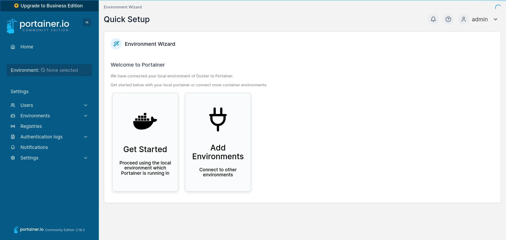 在登入Portainer後,點選Get Started