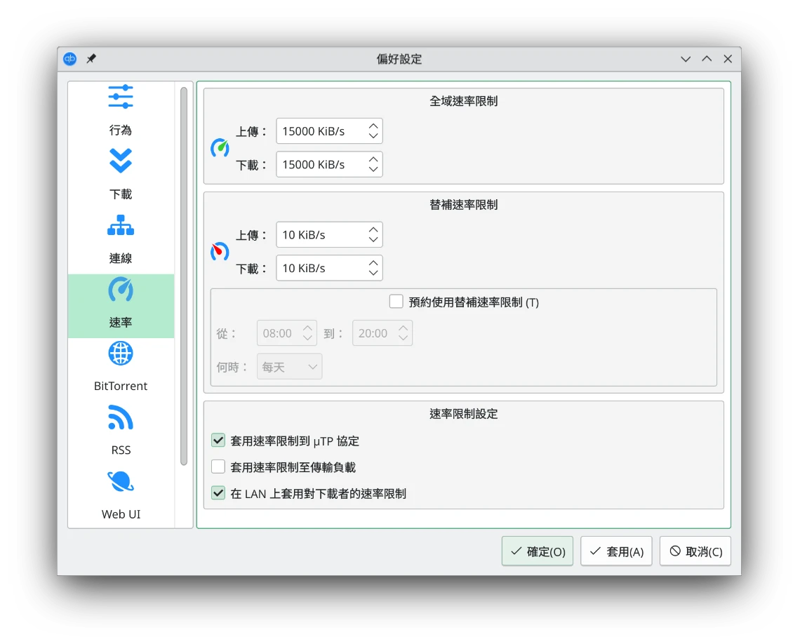 點選速率,依照你的實際網速限制最大下載速度