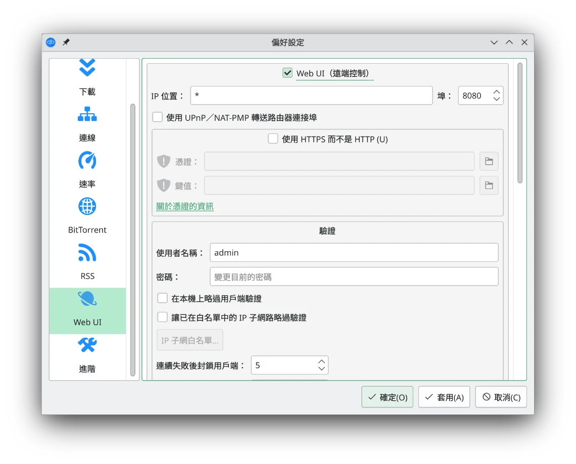 WebUI讓你可以從瀏覽器遠端管理qBitTorrent的下載任務。