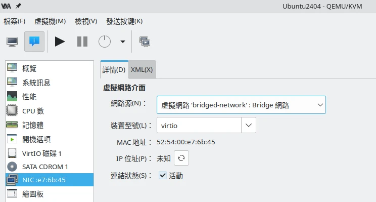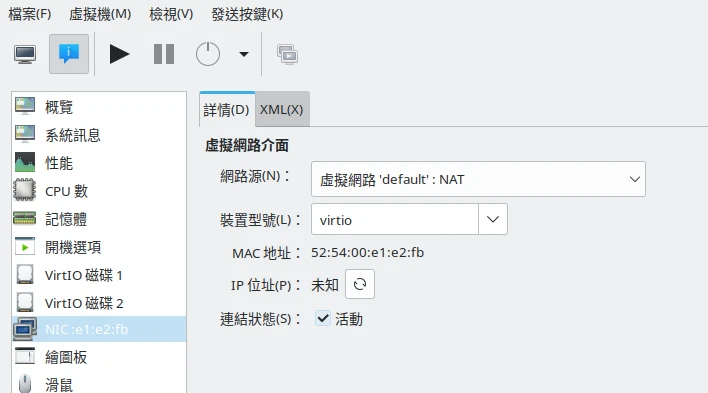 開啟Virt Manager,調整虛擬機網路,選取