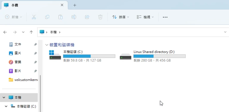 按下電源插頭的圖示,它就會將Linux的目錄掛載為本機硬碟