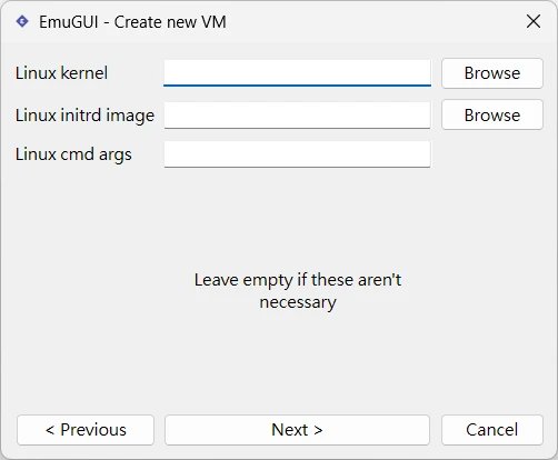 最後一個,Additional arguments。如果想要使用UEFI而非BIOS開機,請使用以下參數(不確定能否成功,因為EmuGUI似乎沒辦法正確指定路徑的樣子)