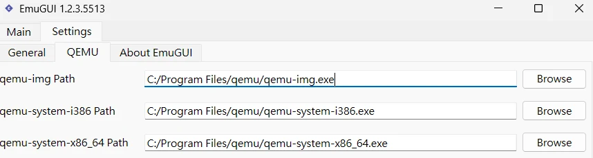 開啟請手動指定qemu-img、qemu-system-x86_64的路徑,通常是