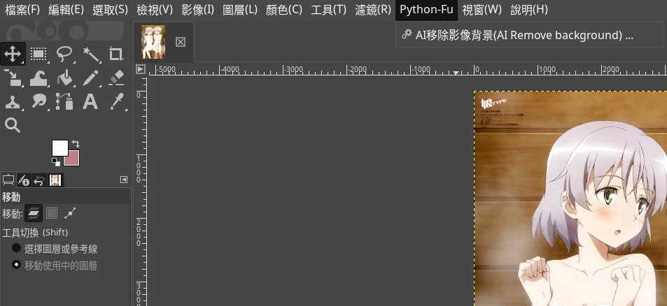 你可以在GIMP使用rembg,這裡使用的是James Huang製作的RemoveBG.py外掛。