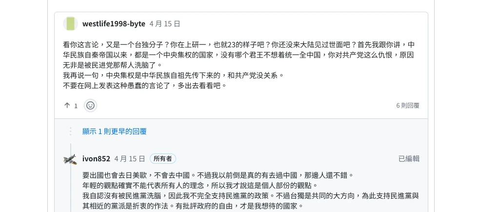 況且都有人願意花時間開Github小號來動態牆下方跟我吵政治了,那麼其實有沒有註冊也沒差。