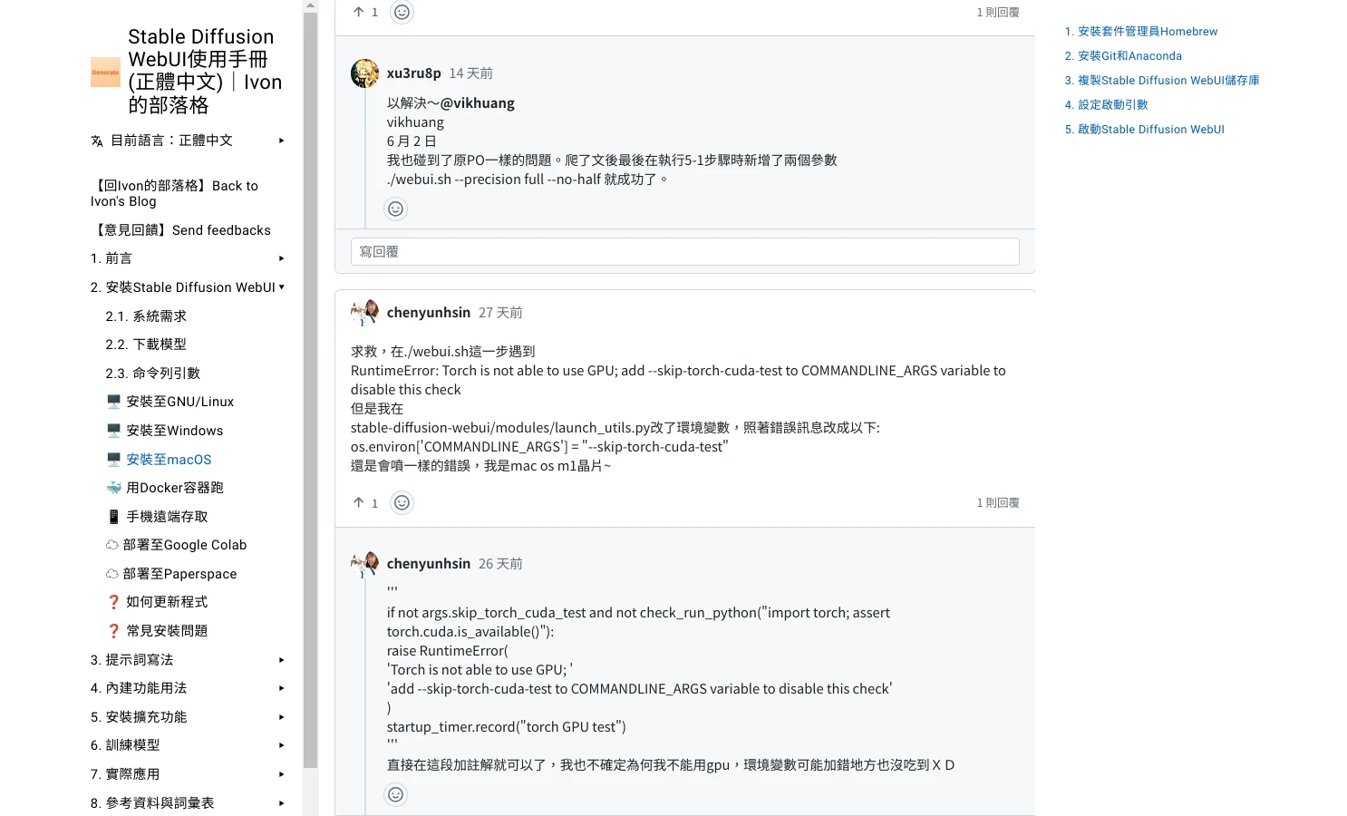 我想Giscus可能更適合當程式文件的留言板吧,像之前做的Stable Diffusion WebUI操作手冊就很適合用Giscus,內嵌在文件下方給程式設計師討論程式碼用。