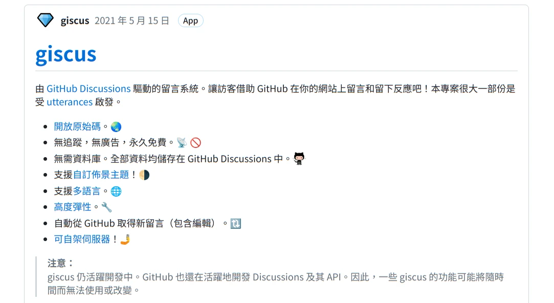 Giscus本體開源,很輕巧很棒,但它逐漸不符合我的需要。