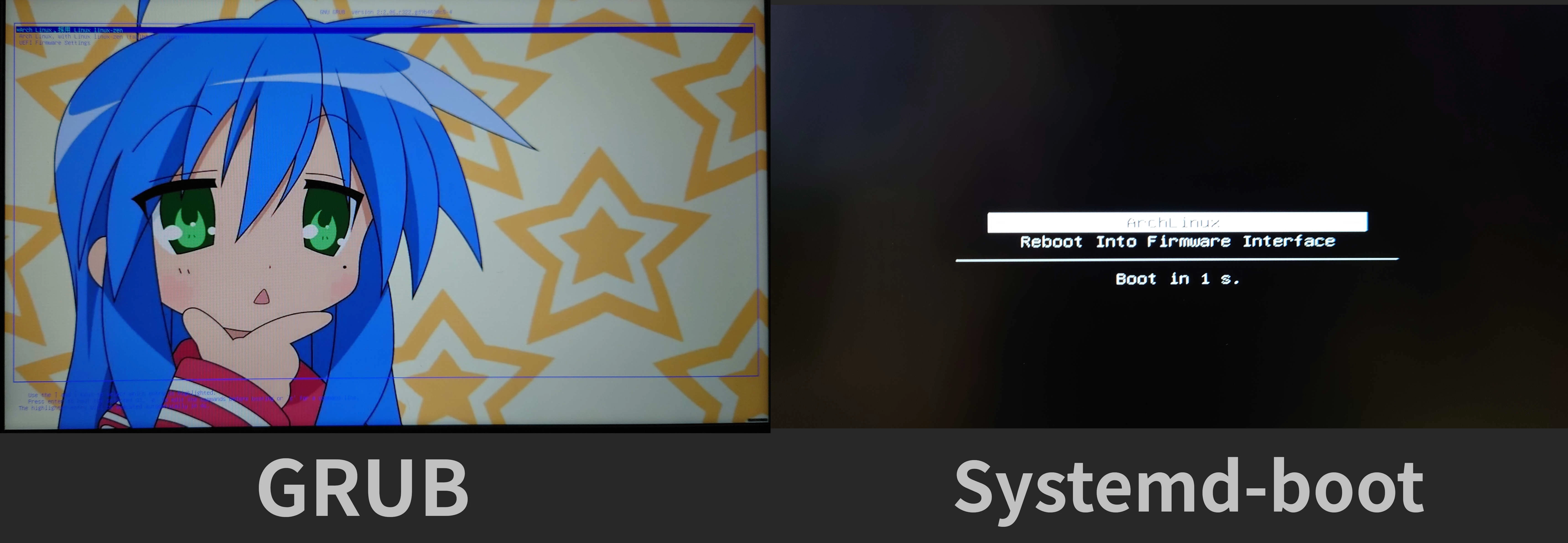 如果硬碟沒有太多複雜的加密設定的話,從GRUB遷移至Systemd-boot不會花太多力氣,GRUB設定檔所傳遞的核心參數 (kernel parameter) 在Systemd-boot也可以做到,另外也有人製作適合用於Systemd-boot的開機動畫 (splash) 服務。