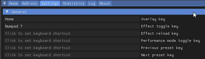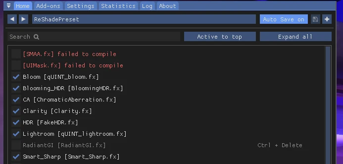 開啟遊戲,按下鍵盤的Home鍵,叫出ReShade面板