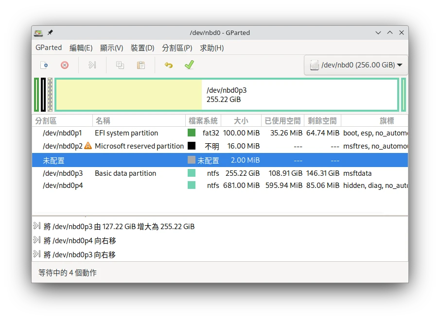 如果磁碟工具讀不到新分區,就得手動對虛擬硬碟的分區做進一步操作。將qcow2掛載為NBD網路硬碟: