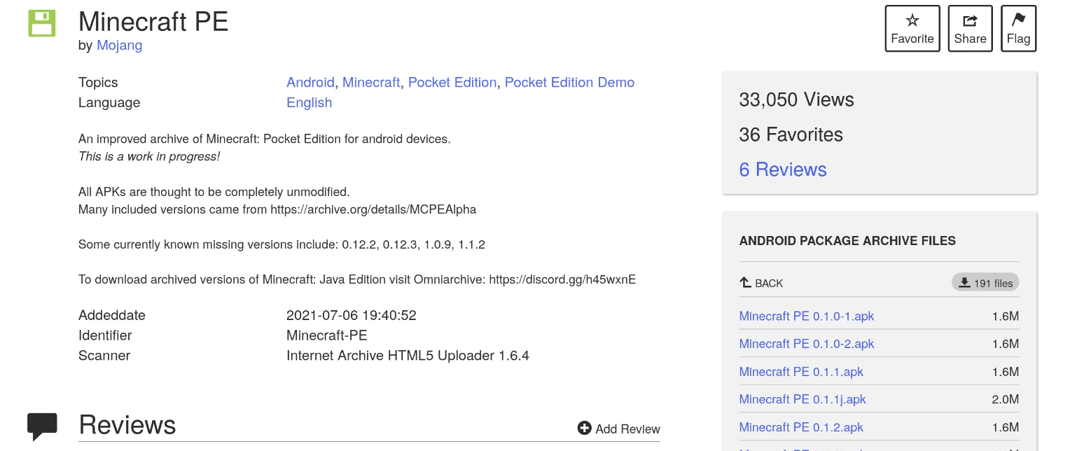 Internet Archive有許多舊版Minecraft APK的備份。從0.1.0到1.0都有。