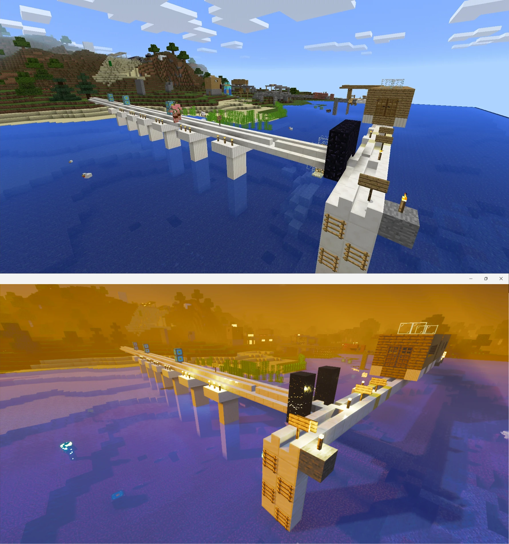這篇文章討論我復活舊世界的方法。如下圖,0.7.6時期創造的世界,用新版Minecraft光影拍攝,整個感覺都不一樣了呢。