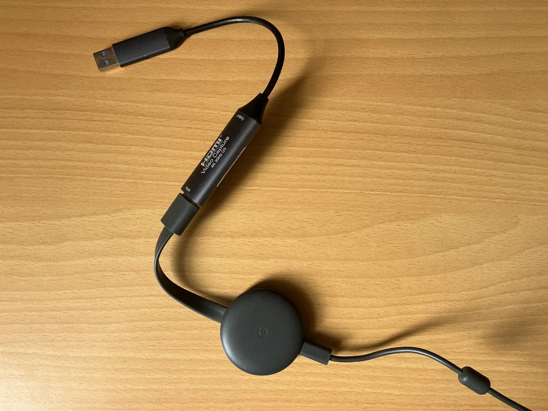 最更瘋狂的想法,把Chromecast跟USB擷取卡連在一起,插到電腦上,就能從手機投影到電腦。