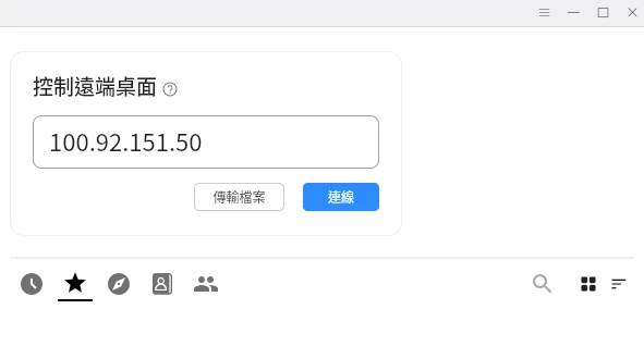 100.開頭。在RustDesk的連線處輸入遠端電腦的Tailscale IP(似乎不能用MagicDNS,一定得打IP)。